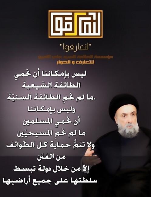 إن “يد الله مع الجماعة”، يقول العلامة علي الأمين، مضيفاً “إذا كانت كل الجماعات في لبنان هي مع مرجعية الدولة وحصرية السلاح بيدها، فيجب أن ينضم الشيعة إلى بقية الجماعة”، لأنه “بذلك نحصل على قيامة جديدة للبنان، دولة المؤسسات والقانون”.
